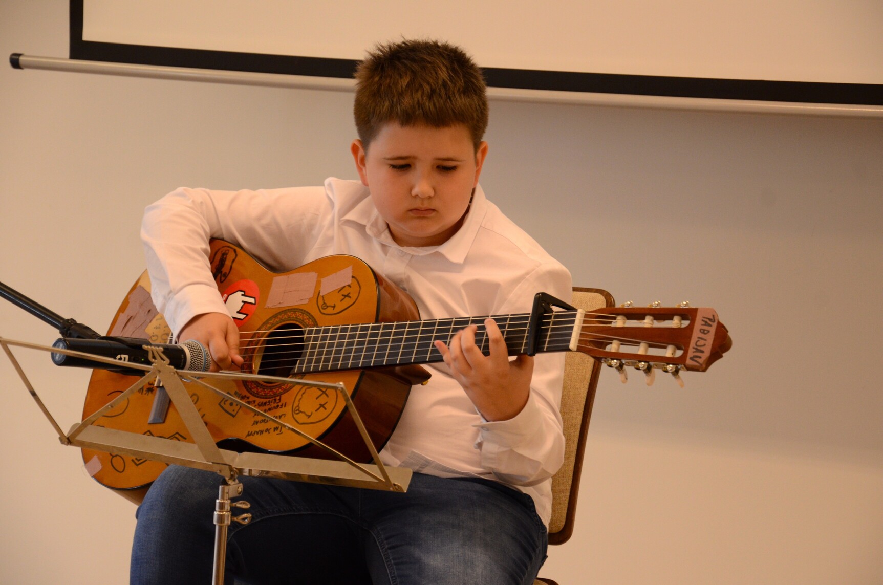 Zaprezentowali się uczestnicy zajęć nauki gry na gitarze (fot. J. Niemiec-Basista)